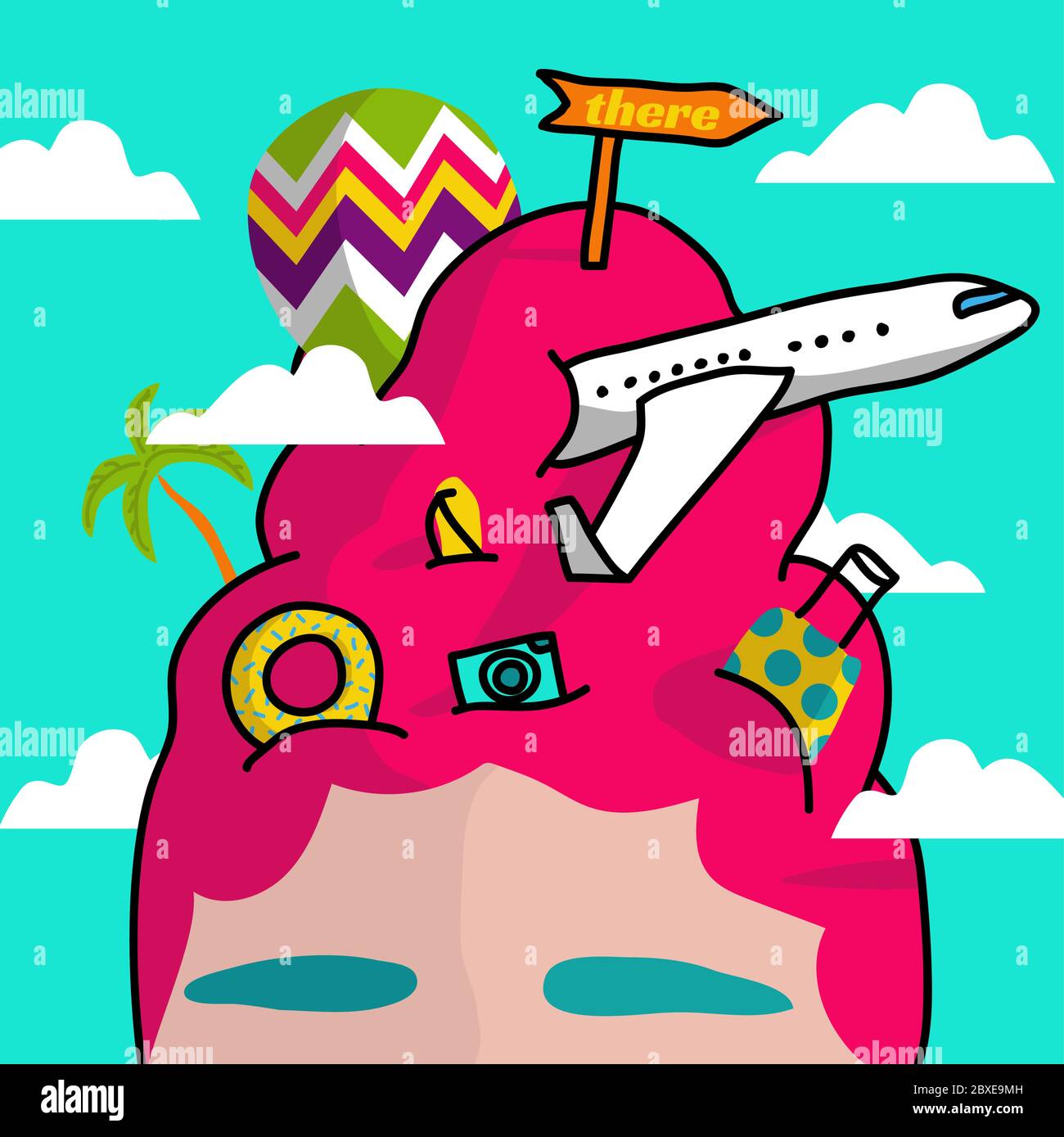 Thoughts In My Head About The Vacation The Desire To Leave To Travel Bright Pink Hair With Stuck Thoughts Airplane Balloon Luggage Palm Tree Stock Vector Image Art Alamy